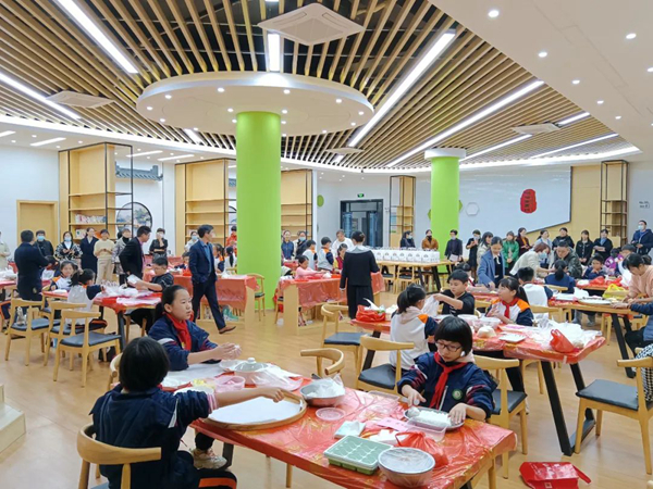 “冬至大如年。”家長和孩子齊動手,營造出濃濃的節日氛圍。窗外雖然飄著小雨,但大家的熱情高漲,一片喜氣洋洋。
