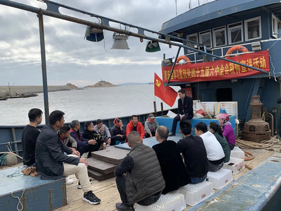 小岞鎮(zhèn)新時(shí)代文明實(shí)踐所開展全會(huì)精神上漁船宣講活動(dòng) 。惠安縣委文明辦供圖