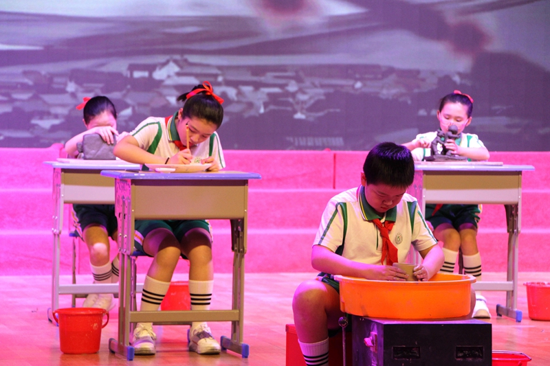 民樂合奏與詩詞朗誦《游子吟》、南音演唱《南音生南國》、現場陶藝制作《在這“陶”花盛開的地方》、舞獅表演《“人文丁墘”——少年舞獅》……項目展演現場,形式多樣的特色節目蘊含豐富的中華優秀傳統文化以及閩南地方特色文化,展現了各城鄉學校少年宮特色活動項目融入到校園文化建設、融入到學校課后服務的工作成果。