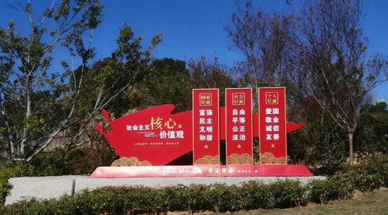 整合資源、創新思路,在社區、小區、廣場、公園、商業街、建筑工地、公交站點、文化陣地等處,通過宣傳欄、展示板、LED屏幕、園藝造景、宣傳掛圖、手繪墻畫等載體,廣泛開展社會主義核心價值觀24個字、未成年人思想道德建設、“講文明 樹新風”等公益廣告宣傳。