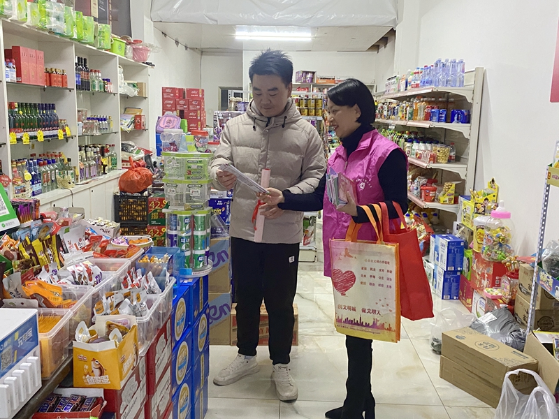 志愿者們向沿街商戶、轄區居民贈送春聯、福字和發放宣傳資料 南平市委組織部供圖