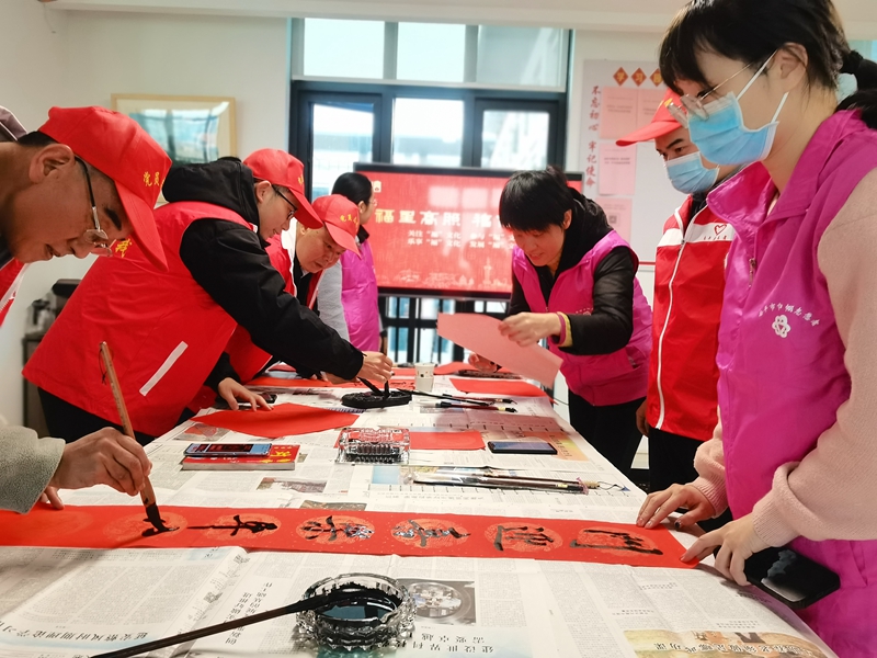 由南平市婦聯與市委組織部、市編辦等單位聯合舉辦的“我們的節日——春節”活動現場,黨員志愿者和巾幗志愿者們有序地忙碌著,一幅幅承載著美好祝福的春聯和一個個創意“福”字很快掛滿護欄、鋪滿桌臺……