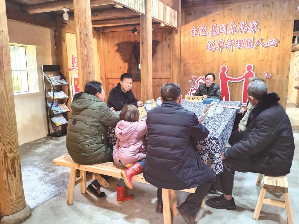 2021年2月23日,武夷山市嵐谷鄉(xiāng)橫墩紅色評理站為村民調(diào)解紛爭。