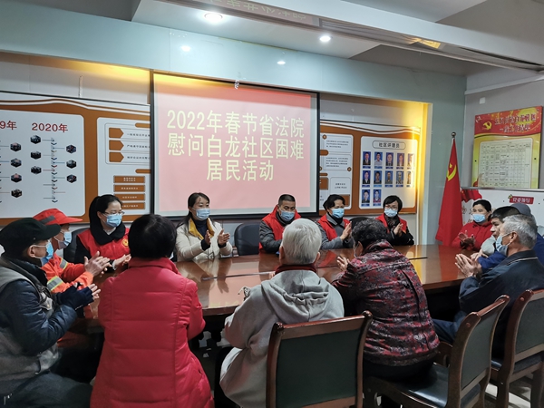 此次主題活動,省法院機關根據上級有關通知精神,結合法院職能特點,確定了“送黨課”“送暖心”“送法律”“送健康”“送平安”“送文明”“送文化”“送綠色”等8個系列志愿服務活動。到社區慰問困難是8個系列活動之一的“送暖心”志愿服務活動,也是省法院長期以來一直堅持的“司法送暖”工作做法。省法院機關積極動員和組織各黨支部和廣大黨員干警自覺地將主題活動融入新時代文明實踐,緊扣人民群眾對美好生活的向往,與“我們的節日”主題活動、“我為群眾辦實事”實踐活動結合起來,立足實際、發揮優勢、實事求是,創造性地開展好主題活動,不斷提升人們的獲得感、幸福感、安全感,用愛心暖意讓群眾過上一個平安、幸福、吉祥年。(省法院機關黨委供稿 李國洪)