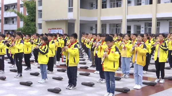 上杭縣蛟洋中心小學(xué)鄉(xiāng)村“復(fù)興少年宮”開(kāi)設(shè)葫蘆絲吹奏特色課程。上杭縣委文明辦供圖