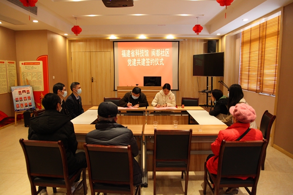 簽約儀式上,省科技館黨支部書記與閩都社區黨委書記分別介紹了基本情況及有關工作的開展情況,互相簽訂了黨建與新時代文明實踐共建協議書。省科技館表示將充分發揮科普資源等優勢,與閩都社區常態化聯辦形式多樣的實踐活動,在相互學習和共建共享中促進黨建和文明創建工作再上新臺階。