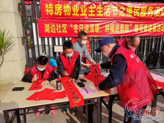 春聯納福送心意,湖邊社區聯合特房物業、特房山水杰座業主委員會共同舉辦了“冬日送溫暖,納福送春聯”迎新春活動?,F場還同時開展了移風易俗、家政幫扶、義診等主題宣傳和志愿服務活動,推動“移風易俗、弘揚時代新風”,共同營造溫馨、和諧、勤儉的新春氛圍。