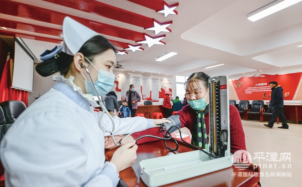 護(hù)士在給村民量血壓(平潭時(shí)報(bào)記者 蔡起輝攝)
