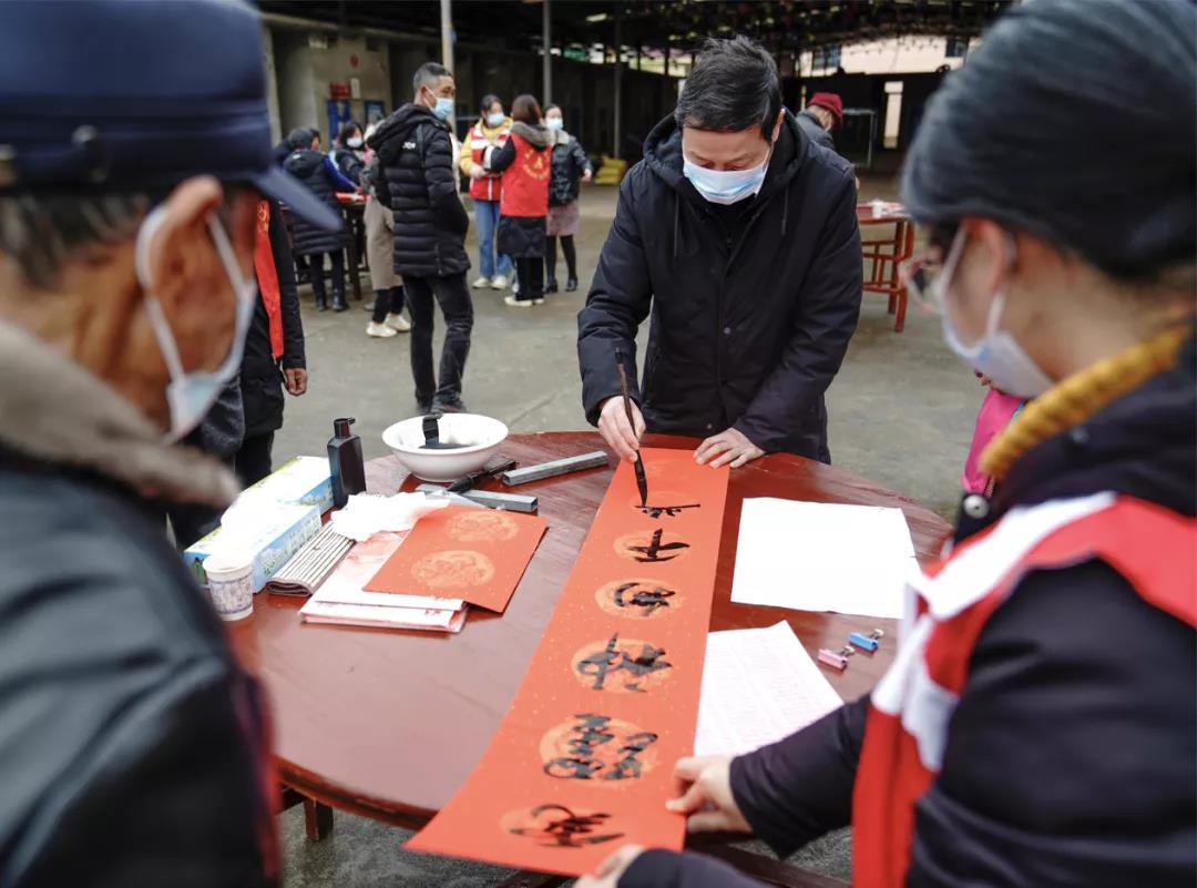 本次活動,南平市文藝館充分發揮自身優勢,精心組織了一支文化志愿者隊伍。來自書協、美協的志愿者為村民們免費寫春聯送祝福,舞協志愿者現場教授我館創編的快樂健康舞。村民們領春聯、曬福字、學舞蹈,豐富多彩的惠民項目吸引了許多村民前來,村民感嘆“熱熱鬧鬧的,特別有年味,福到家啦!”
