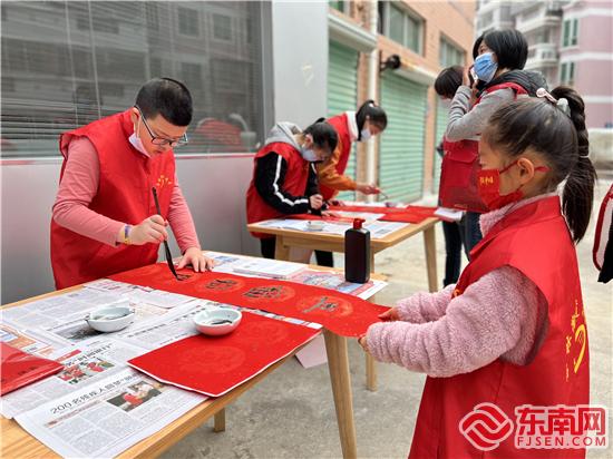 志愿者寫對聯(杏林街道新時代文明實踐志愿服務隊 供圖)
