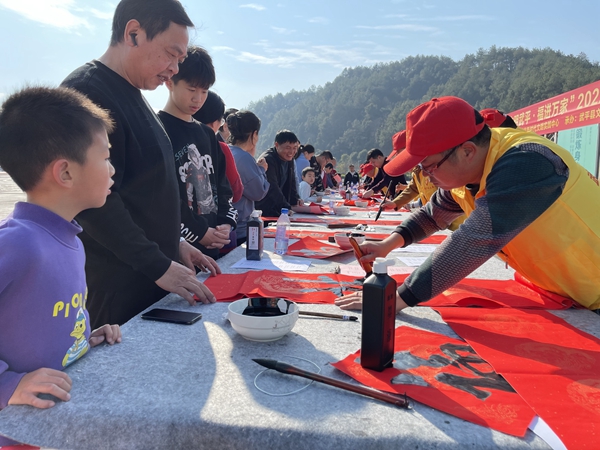 活動舉行了簡易的啟動儀式,十位書法家同步書寫“福”字,舉“福”恭賀全縣人民虎年大吉,武(五)福臨門。