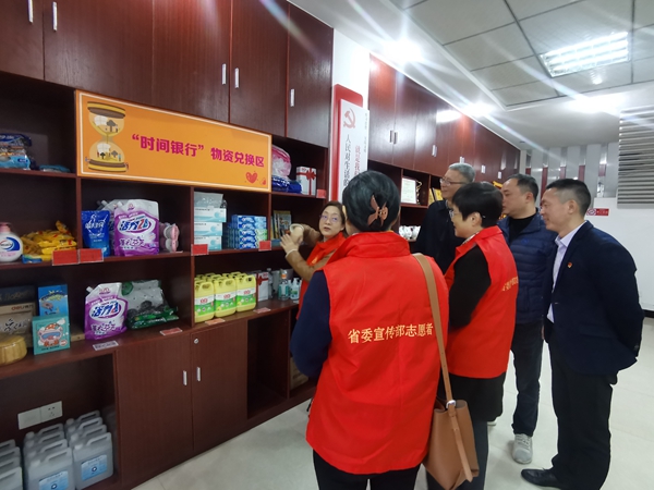 隨后,大家興致勃勃地參觀了羅星社區(qū)“時(shí)間銀行”,對(duì)這種互助養(yǎng)老和志愿服務(wù)深度融合的新型養(yǎng)老方式和社區(qū)的扎實(shí)工作表示肯定。大家紛紛表示要爭(zhēng)當(dāng)志愿者,繼續(xù)為社區(qū)居民提供各種鄰里守望志愿服務(wù)。省委宣傳部傳媒監(jiān)管處黨支部書(shū)記程少霞代表支部,向羅星社區(qū)“四點(diǎn)半學(xué)校”贈(zèng)送了300冊(cè)少兒圖書(shū),為社區(qū)未成年人思想道德建設(shè)增添資源。
