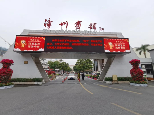 漳州賓館戶外LED大屏春節(jié)期間“福”文化公益廣告宣傳推廣。漳州市委文明辦供圖