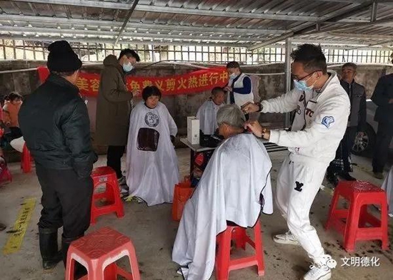 在活動舉辦地國寶中心小學里,書法志愿者揮毫潑墨,將一副副充滿新春祝福的對聯贈送給現場群眾;上古美容連鎖店的志愿者提供免費理發;縣醫院志愿者開展義診,并提供健康咨詢。