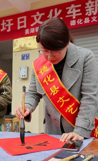 文明風1月27日訊 年關將至,年味愈濃。為營造歡樂祥和的節日氛圍,豐富廣大群眾的文化生活,喜迎新年到來,1月17日,美湖鎮邀請縣文聯、書法家協會到該鎮舉辦“百福駢臻”圩日文化車新春送祝福活動。