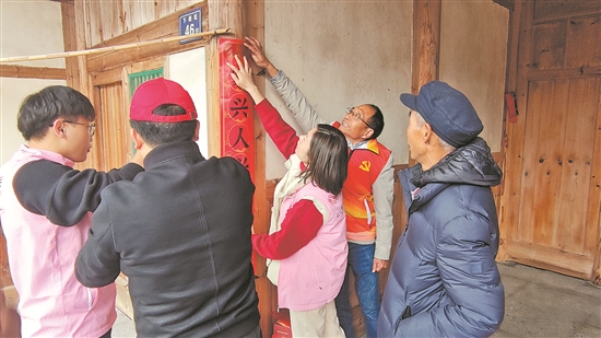 志愿者幫困難戶貼春聯