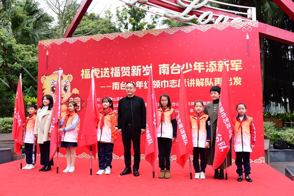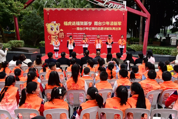 文明風1月28日訊(通訊員王堅)為加深青少年們對倉山歷史、人文、環境多維度的了解,弘揚閩都文化,多點式打造紅領巾小講解員志愿服務隊,1月25日下午,由中共倉山區委宣傳部指導,中共倉山區委文明辦、共青團倉山區委員會、倉山區文化體育和旅游局、倉山區旅游事業發展中心、倉山區園林中心、倉山區總工會、倉山區文聯主辦,福建丫好傳媒集團承辦,倉山區勞動者書畫攝影協會、福州市城門中心小學、福州市倉山霞鏡小學、福州市林浦小學、福州市螺洲中心小學、福州市洪塘中心小學、福州市郭宅中心小學協辦的“福虎送福賀新歲 南臺少年添新軍”——南臺少年紅領巾志愿講解隊再出發活動在江心公園隆重舉辦。來自倉山區6所學校的小講解員歡聚一起,共享榮光時刻。