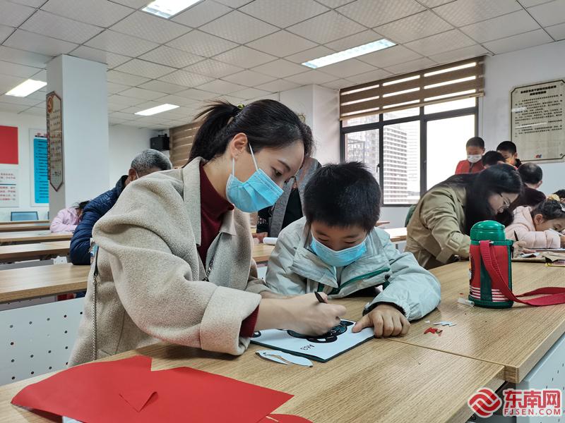 親子共同完成剪紙制作(郭杰 攝)