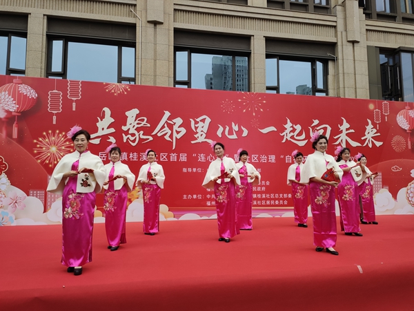 當天上午的活動真可謂是熱鬧非凡,兩岸社區(qū)廣場上成了一片歡樂的海洋?!拔覀兊墓?jié)日·春節(jié)”專場活動設在廣場的南面,東面同時舉辦“共聚鄰里心 一起向未來”——桂溪社區(qū)首屆“連心節(jié)”暨社區(qū)治理“自循環(huán)”模式啟動儀式活動。東南兩邊的活動連成一片、遙相呼應。