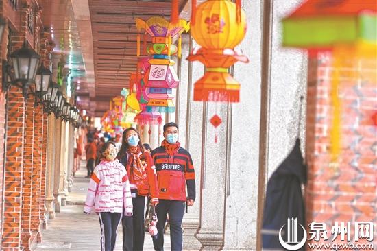 來自省外的王先生一家在中心市區中山路感受泉州花燈工藝 (陳小陽 陳英杰 攝)