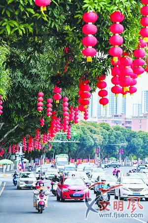 大紅燈籠高高掛,同安新春氛圍濃。(夏海濱 攝)