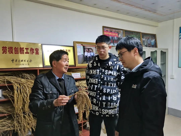 座談會上,陳進周就水稻種植、勞模精神作了經驗分享,并與“快樂星期天”陪伴成長親子公益組織創辦人馬宬愷父子共同商定親子勞動教育實踐基地名稱及課程設計等有關事宜。隨后實地參觀陳進周勞模創新工作室和國家水稻抗性基地,聽取陳進周的介紹,勘察選擇適合活動種植的地塊。