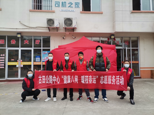 古田公路中心開(kāi)展“健康八閩 暖程春運(yùn)”志愿服務(wù)活動(dòng)。古田縣委文明辦供圖