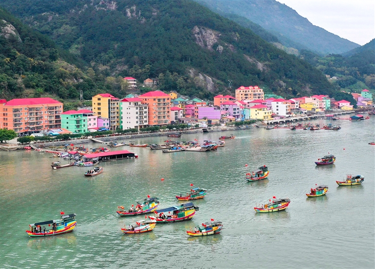 寧海村漁船裝扮得喜慶紅火。閩東日?qǐng)?bào)供圖