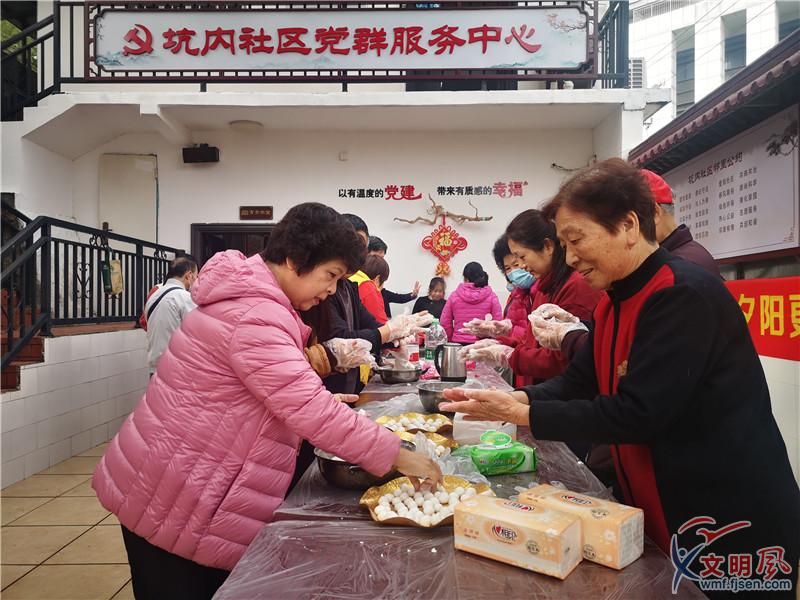 街坊鄰居有說有笑包起了湯圓,現(xiàn)場(chǎng)一派和樂融融。坑內(nèi)社區(qū)供圖
