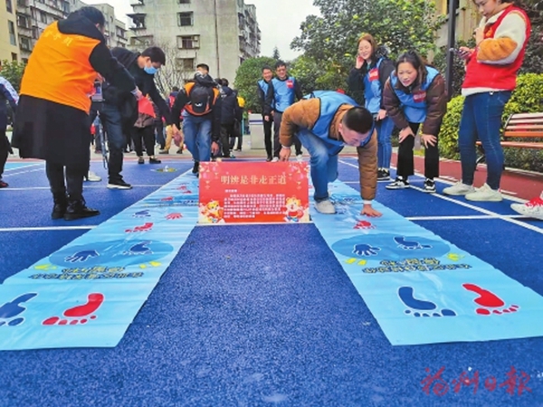 反腐保齡球、飛鏢射“貪”、吃湯圓看冬奧比賽……昨日上午,一場熱鬧的趣味運動會在鼓樓區(qū)洪山鎮(zhèn)大凰山社區(qū)舉行,吸引了200余人參與。