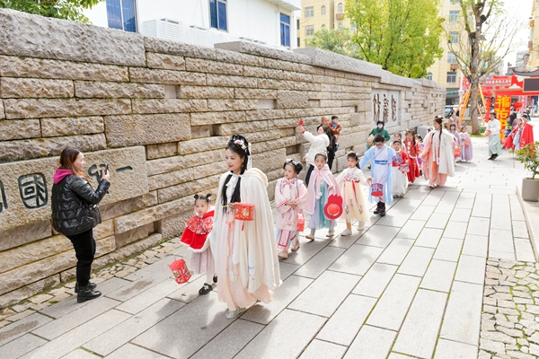 巡游盛典同時開啟,大小朋友身著廣袖襦裙,頭梳古韻發型,手提元宵燈,在魁龍坊曲裾輕舞,為游客呈現一場古韻十足的視覺盛宴。
