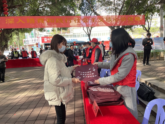 縣委宣傳部、文明辦等16個(gè)部門通過(guò)展板展示、設(shè)點(diǎn)咨詢、志愿服務(wù)等方式,開(kāi)展歡度元宵、推廣“福”文化、深化移風(fēng)易俗、誠(chéng)信建設(shè)、平安建設(shè)、普法宣傳、愛(ài)國(guó)衛(wèi)生、疫情防控、打擊偷私渡等主要內(nèi)容的公益宣傳,通過(guò)通俗易懂、一目了然的社會(huì)宣傳,深化新時(shí)代文明實(shí)踐,在茶鄉(xiāng)大地沐浴文明新風(fēng)尚,傳遞社會(huì)正能量。(安溪縣委文明辦)