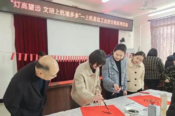為傳承與發揚中華傳統文化,豐富職工的精神生活,在元宵節到來之際,上杭縣總工會機關工會開展“我們的節日·元宵”系列活動。活動現場,大家揮毫潑墨,一個個“福”字躍然紙上。“福”不僅寄托了人們對幸福生活的向往,也是對美好未來的祝愿。