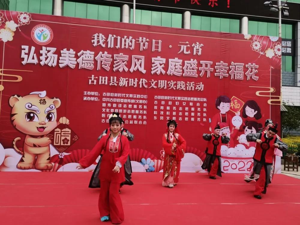 辭舊鞭炮催春潮,迎新鑼鼓鬧元宵。元宵節是中國的傳統節日之一,為弘揚中華優秀傳統文化,增強廣大干部群眾的文化自覺和文化自信,2月15日上午,由古田縣新時代文明實踐中心、古田縣新時代文明實踐志愿服務總隊主辦,中共古田縣委宣傳部(文明辦)、古田縣婦女聯合會、宣傳宣講等6支志愿服務隊及古田縣愛心公益聯合會承辦的“我們的節日?元宵”——“弘揚美德傳家風 家庭盛開幸福花”新時代文明實踐志愿服務活動在古田縣文化廣場舉行。縣委常委、宣傳部部長蔡晶晶參加了此次活動,并為群眾送上節日的祝福。