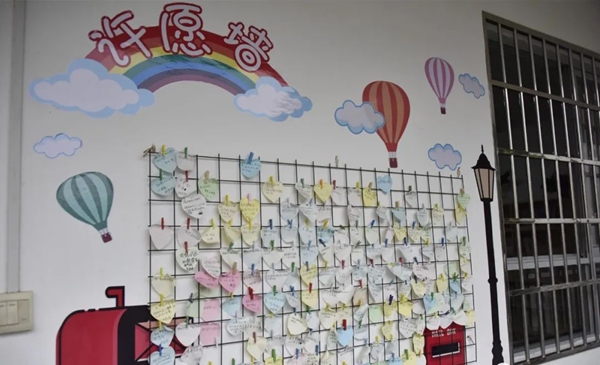 武平縣十方鎮公益圖書館心愿墻。武平縣委文明辦供圖