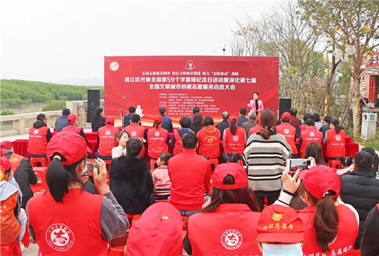 志愿者代表宣讀《洛江區(qū)創(chuàng)建全國文明城市和省級文明城區(qū)倡議書》,號召廣大群眾共同參與文明創(chuàng)建活動。
