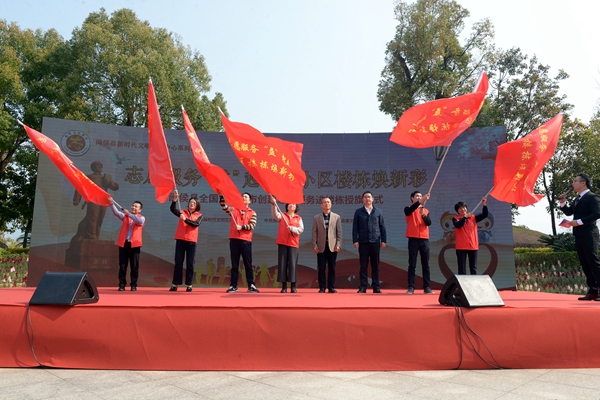 活動現場舉辦“志愿服務益起來-小區樓棟煥新彩”授旗儀式。吳開梅攝