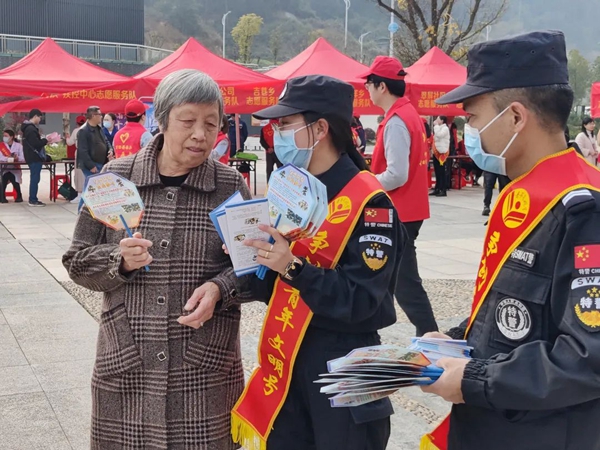 活動現(xiàn)場,縣衛(wèi)健、工商、法院、司法、人社、農(nóng)業(yè)農(nóng)村、交警和融媒體中心等70多支志愿者隊伍開展義剪、義修、義診、清潔家園、文明交通勸導(dǎo)、維權(quán)以及法律咨詢等志愿服務(wù),向過往市民分發(fā)宣傳手冊,鼓勵群眾積極學(xué)法、堅決守法、敢于用法。