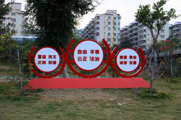 公園內(nèi)的“社會(huì)主義核心價(jià)值觀”景觀小品