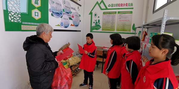 富口鎮鄉村“復興少年宮”同學在富口村環保小站擔任環保小衛士向老人宣傳垃圾分類知識。沙縣區委文明辦供圖
