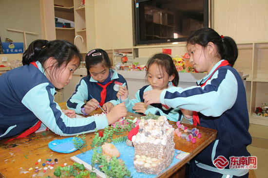 同學(xué)們合力制作精美的貝雕。東南網(wǎng)記者 林杰 攝