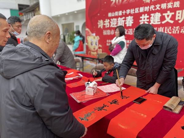 福鼎市桐山街道十字社區新時代文明實踐站開展“詩書迎新春共建文明城”寫春聯活動