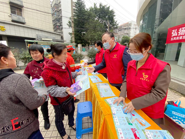 省商務廳志愿者代表向左海社區居民分發宣傳單。