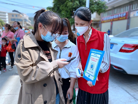志愿者協(xié)助掃碼登記。安溪縣委文明辦供圖