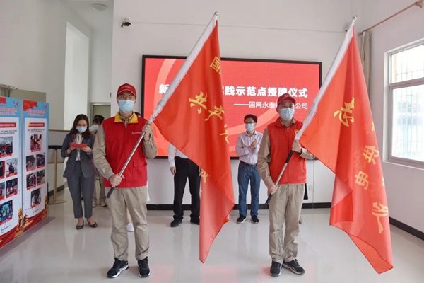 隨后,永泰縣委文明辦工作人員為國家電網(wǎng)福建電力“雙滿意”(福州永泰)共產(chǎn)黨員服務(wù)隊(duì)和永泰供電志愿服務(wù)隊(duì)兩支隊(duì)伍授旗,為國網(wǎng)永泰縣供電公司授予新時(shí)代文明實(shí)踐示范點(diǎn)授牌。