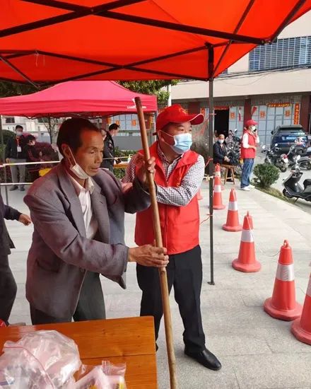陳主義在核酸檢測點幫助行動不便的群眾。 安溪縣委文明辦供圖