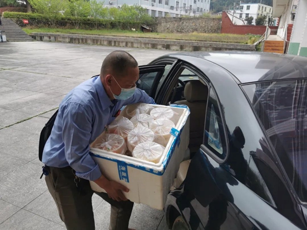 林思棕為隔離點配送飯菜 上涌鎮供圖