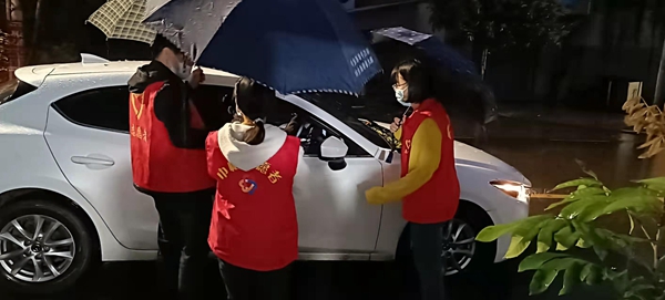 雨夜,尤溪口鎮的志愿者守在疫情防控一線