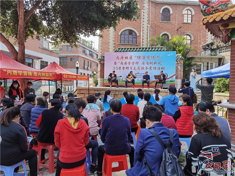 為進一步弘揚雷鋒精神,彰顯志愿風采,當月,內厝社區在種德宮小廣場組織宣傳演出、義診義剪活動。獻上的節目如同一道道文化大餐,精彩紛呈。同時,社區工作人員向居民們積極宣傳衛生防疫、健康安全等科普知識,民眾熱情踴躍參與其中?!笆谌艘贼~不如授人以漁?!贬槍碗s莫測的網絡安全環境,內厝社區還與鼓浪嶼派出所聯合開展防詐騙宣傳活動,亮出反詐利劍,提高居民的反詐意識,擦亮鑒別網絡詐騙的“慧眼”。