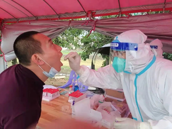 鄉(xiāng)村醫(yī)生陳偉琳積極做好重點(diǎn)地區(qū)返鄉(xiāng)人員排查和健康監(jiān)測,主動參與湖西衛(wèi)生院對全鄉(xiāng)的核酸檢測工作,并為行動不便的老人入戶核酸檢測。